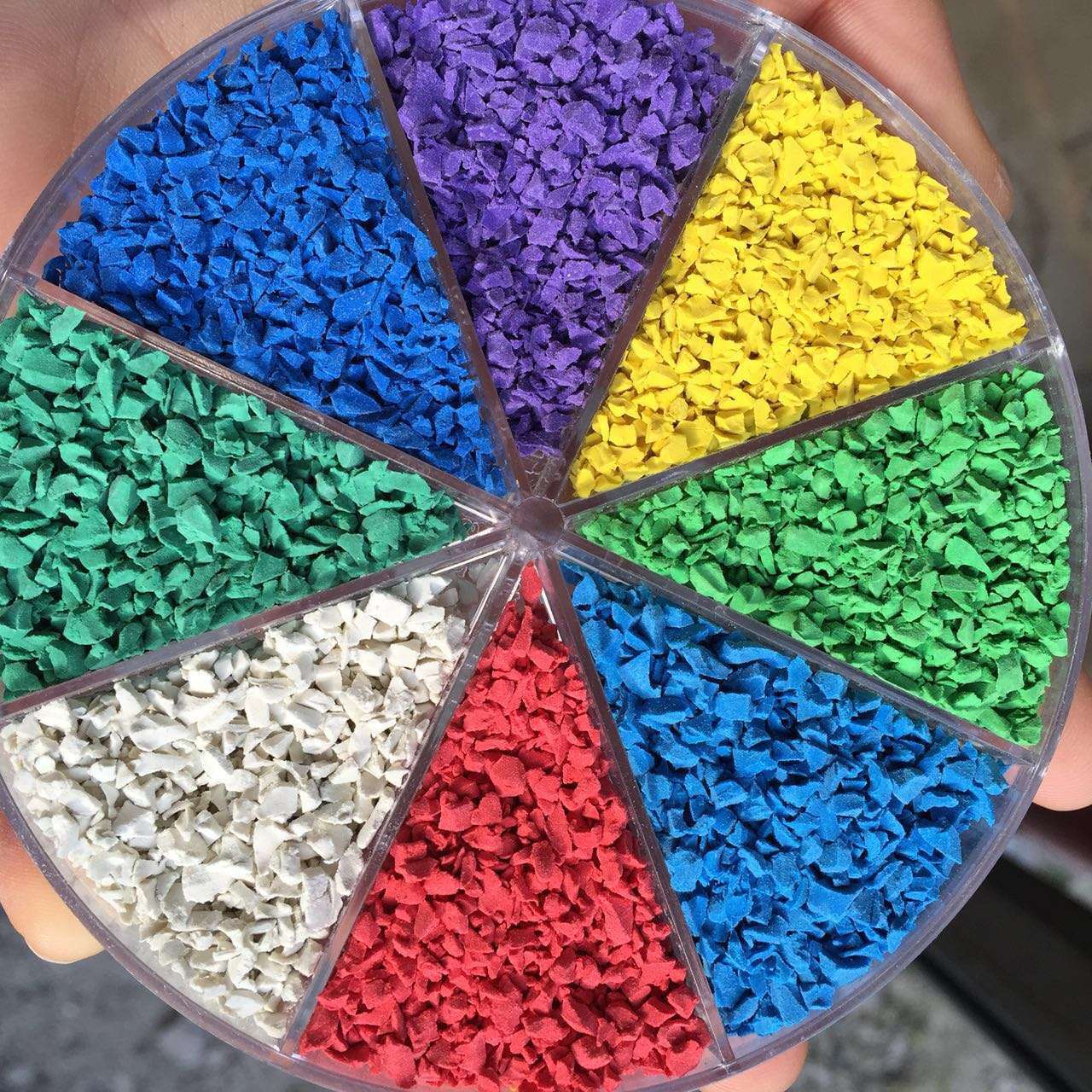 是由表層EPDM彩色橡膠緩沖層組成,有多種顏色可搭配,可隨意鋪在不同的顏色或單種顏色,特別適合于大中小學(xué),滿足青少年心理特點(diǎn),還可直接鋪在混凝土面層上。