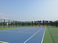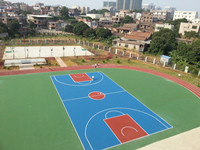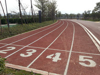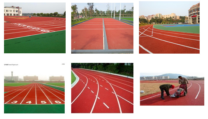 ![]() ![]() ![]() 硅PU 彈性層: 彈性層施工前應(yīng)仔細(xì)檢查確認(rèn)基礎(chǔ)處理完后方能進(jìn)行彈性層施工,彈性層為雙組份材料,只需用稀釋劑調(diào)節(jié)合適施工稠度,用齒刮板涂于基面,每道涂刮厚度不能超過(guò)1.0mm,每道涂刮時(shí)間間隔以前一道干固為準(zhǔn)(一般約10小時(shí),具體視現(xiàn)場(chǎng)天氣情況而定)直至涂刮至所需厚度。涂刮時(shí)注意流平效果,若不能流平刮齒痕跡,需多加稀釋劑以保證表面流平。若氣溫較低(﹤10℃=以及相對(duì)濕度較底(﹤60%=需加入(3~8%)水?dāng)嚢杈鶆蚝笸抗?,以加速材料固化,減少間隔時(shí)間,具體加水量視現(xiàn)場(chǎng)天氣而定,應(yīng)避免在猛烈陽(yáng)光照射下施工。彈性層干固后,用積水法測(cè)試表面平整度,積水處用TB-002修補(bǔ)平整,表面若有粒狀雜物或堆積處需用磨機(jī)或其它工具修整平后才能進(jìn)行加強(qiáng)層施工。 加強(qiáng)層: 加強(qiáng)層為單組份材料,施工方法與彈性層一致。若加強(qiáng)層設(shè)計(jì)較?。ㄐ∮?mm),齒刮涂刮難以流平的,可用膠刮板分多道刮涂,必須保證刮涂后表面光滑平整。在施工過(guò)程中若有雜物混入或刮涂有不平整處需修平滑后才能進(jìn)行面層施工。 面層: 面層為雙組份材料,必須按規(guī)定比例(A組:B組=1:1.5(重量比方))把兩組份充分?jǐn)嚢杈鶆?,(配比不?zhǔn)會(huì)影響面層的固化效果,直接影響面層的使用性能)加水稀釋施工稠度,一般加入50~80%(TB-205重量計(jì)算,根據(jù)現(xiàn)場(chǎng)實(shí)際情況而定)用專用噴槍分多道噴涂于加強(qiáng)層面上。需表面粗糙的加入專用砂進(jìn)行噴涂便可。最低溫度低于5℃不適宜施工,施工后保持10小時(shí)無(wú)水浸泡。各類球場(chǎng)面層參考做法: 分四道噴涂 第一道:底涂0.1mm,第二道:彈性層3mm,第三道:加強(qiáng)層1.5mm,第四道:面層0.5mm,加15%(重量計(jì)算)專用砂,每道用量約為1.2kg, 第四道不加砂(用量約為0.1kg),加砂時(shí),應(yīng)先將A組份與專用砂攪拌均勻, 再加入B組份攪拌均勻,再加水稀釋,(共四道)。 劃線 按標(biāo)準(zhǔn)尺寸量度定位,標(biāo)出界線位置,用美紋紙沿界線兩邊貼在場(chǎng)地上,用專用劃線漆涂刷于美紋紙間,待表面干后撕掉美紋紙。為雙組份材料,必須按規(guī)定比例(A:B=9:1)把A、B兩組份充分混合均勻,分兩道涂刷。若球場(chǎng)表面為粗糙面,第一道可加20%面層專用砂涂刷,以防滲邊。